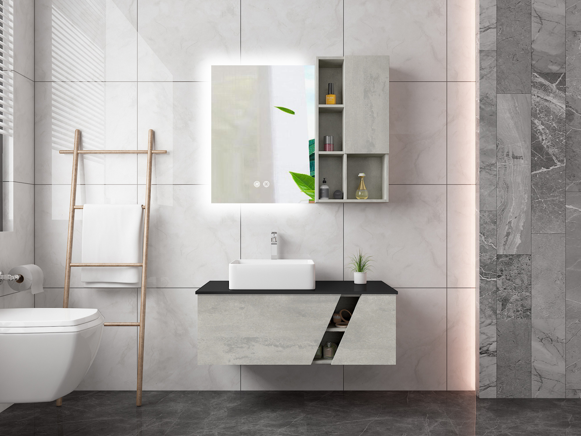 Our elegant and practical premium bathroom sets offer the ideal solution for modern homes. Each set includes a stylish mirror and lighting that, in addition to being practical, enhances the beauty and coziness of your bathroom.