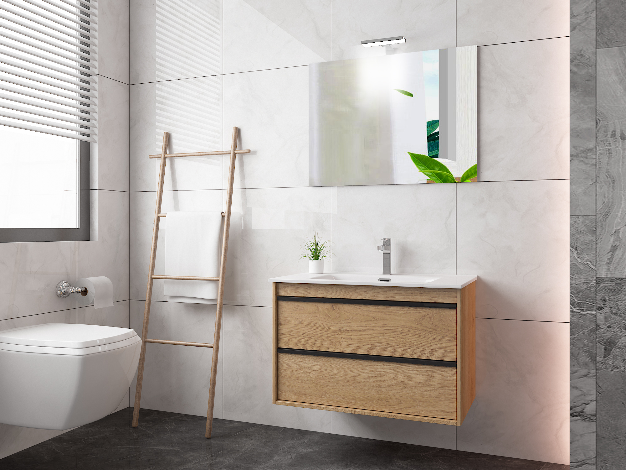 Our elegant and practical premium bathroom sets offer the ideal solution for modern homes. Each set includes a stylish mirror and lighting that, in addition to being practical, enhances the beauty and coziness of your bathroom.
